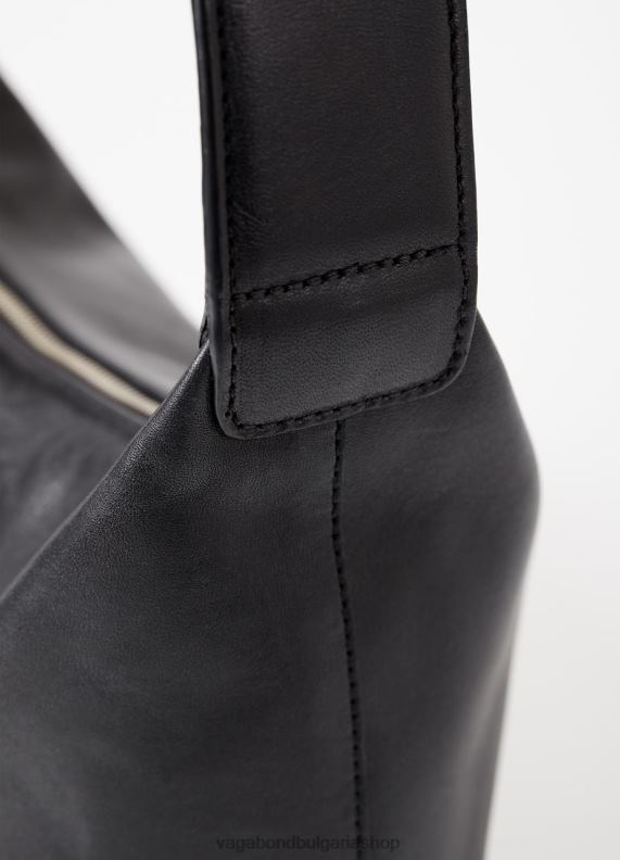 gonda е минималистичната чанта за рамо със структуриран силует. стилът е изработен от черна кожа с широка презрамка, горно затваряне с цип, вътрешен джоб и текстилна подплата.