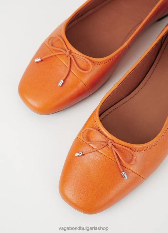 jolin са ежедневните балеринки със съвременна визия. стилът е изработен от оранжева кожа със заоблени пръсти и декоративна панделка с метални детайли. ниските токчета са с размери 11 mm.