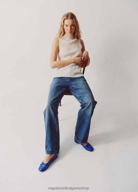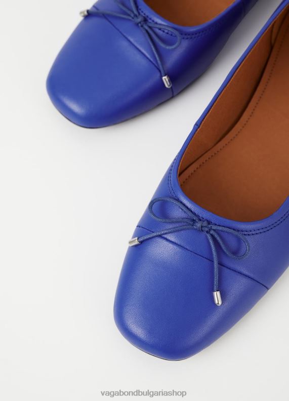 jolin са съвременните балеринки в ярък нюанс. стилът е изработен в кобалтово синя кожа със заоблени пръсти и декоративна панделка с метални детайли. ниските токчета са с размери 11 мм.