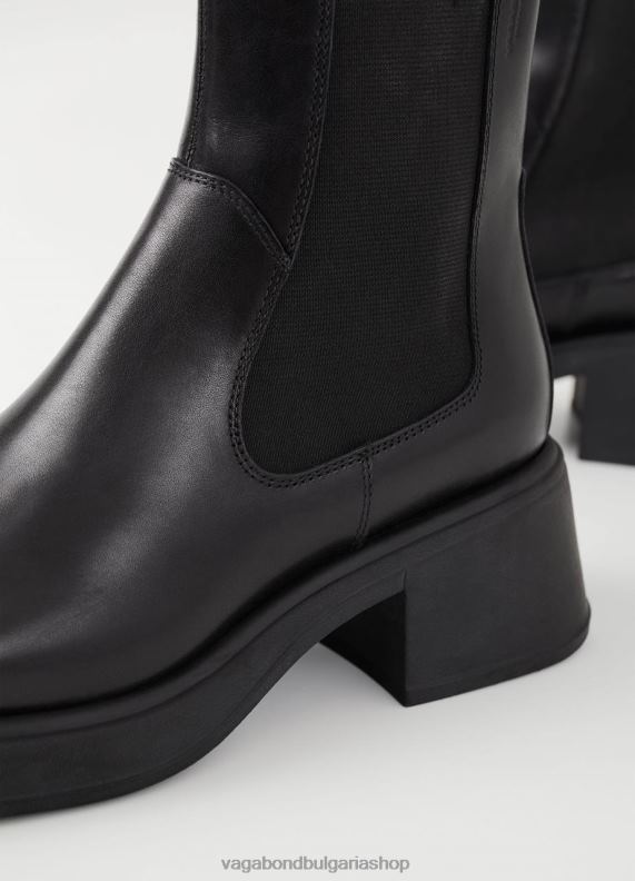 dorah са съвременните ботуши челси за ежедневно носене. стилът е изработен от черна кожа с квадратна форма на пръстите, еластични странични панели и уши за издърпване. масивните токчета са с размери 59 mm.