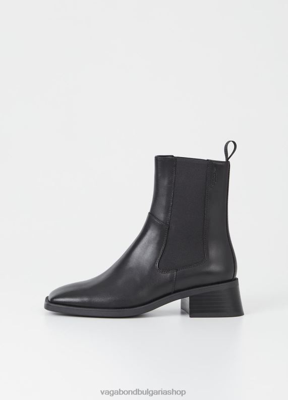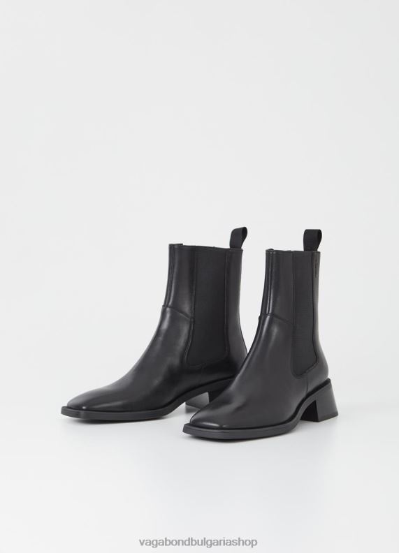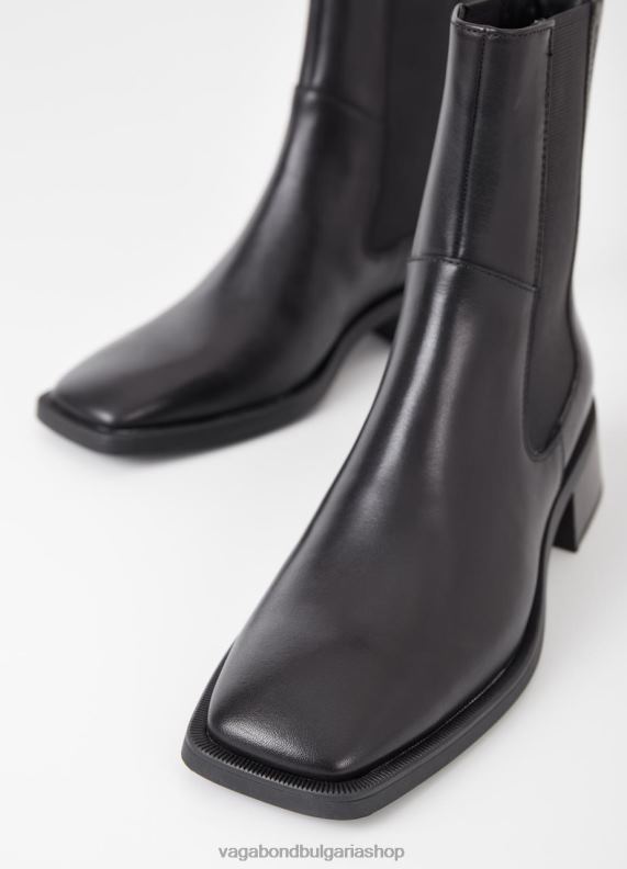 blanca е модерната ботуша челси с ток и женствен силует. стилът е изработен от черна кожа с квадратни пръсти, еластични странични панели и лепенки за издърпване. тънките външни подметки са разположени на 47 мм разширени токове.