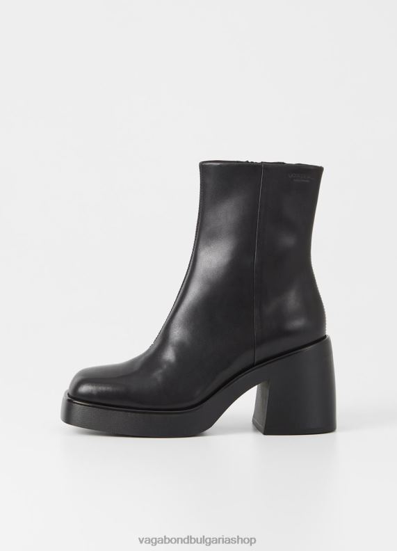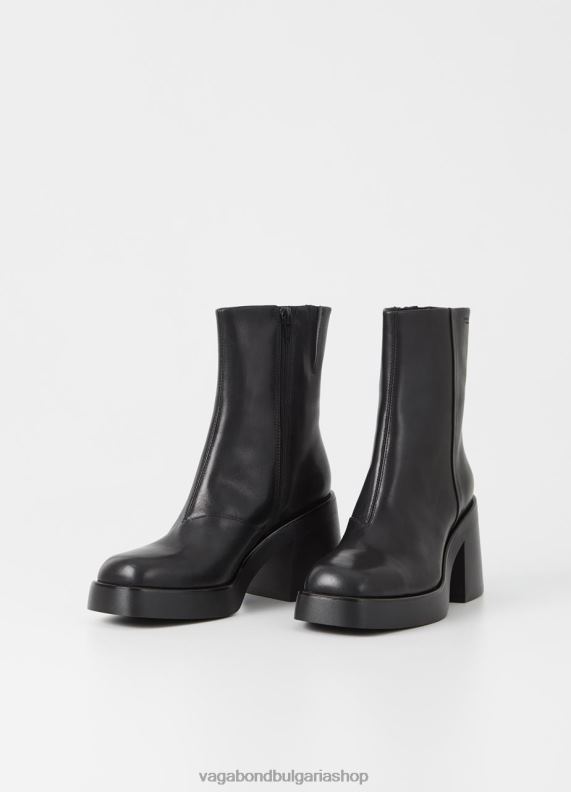brooke са модерните ботуши на платформа с ретро вдъхновен дизайн. стилът е изработен от черна кожа със средна височина, квадратни пръсти и вътрешни ципове. масивните блок токчета са с размери 87 мм.
