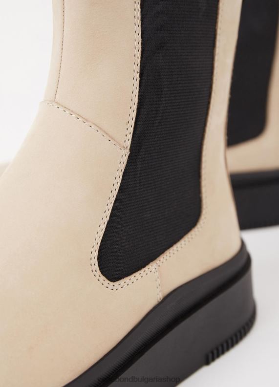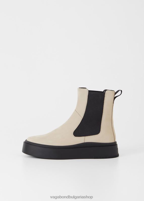 stacy е повдигнатите ботуши челси с равен силует. стилът е изработен от почти бяла кожа със заоблени пръсти, еластични странични панели и лепенки за издърпване. плоските подметки в контрастен цвят са с дължина 40 мм.