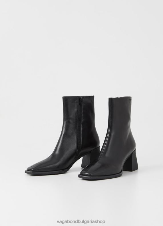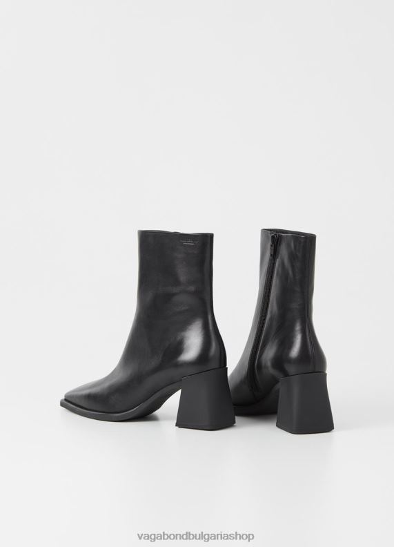 модерните боти до глезена Hedda носят ретро естетика. стилът е изработен от гладка черна кожа с квадратни пръсти, долна част със средна височина и вътрешни ципове. разширените токчета са с размери 70 мм.