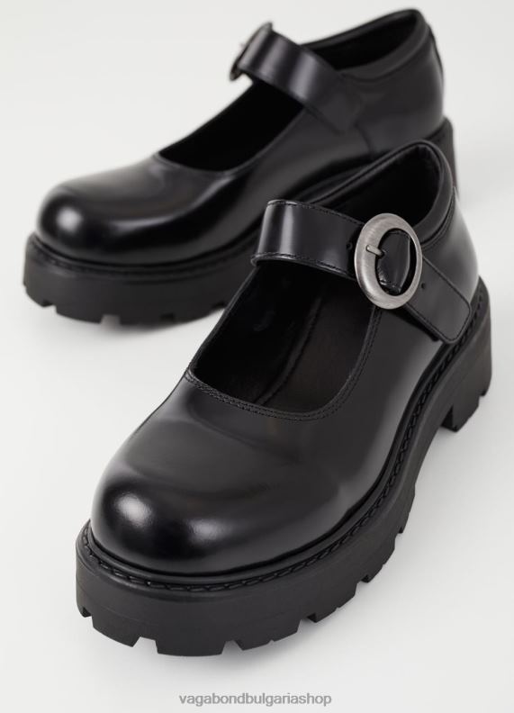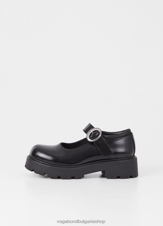 cosmo 2.0 са вдъхновени от Мери Джейн обувки с плътен силует. стилът е изработен от черна полирана кожа със заоблени пръсти и катарама в сребрист тон с регулируема каишка. масивните гумени подметки са с размери 45 мм.