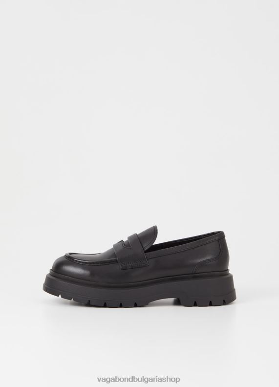 jeff е масивните пени мокасини с елегантен вид. стилът е изработен от черна кожа със закръглена форма на пръстите, детайли на moc-toe и контурна каишка за пени през вампа. дебелите външни подметки са с размери 47 мм.