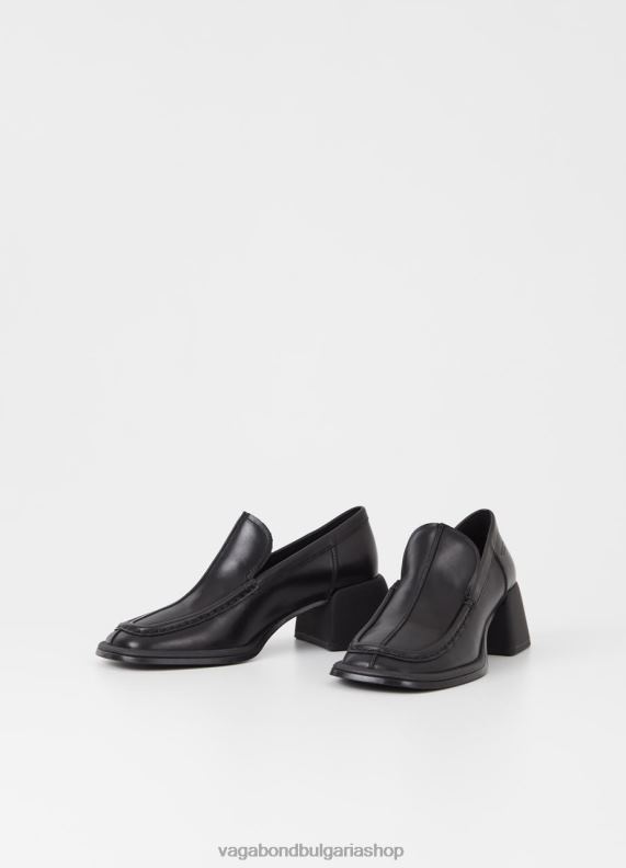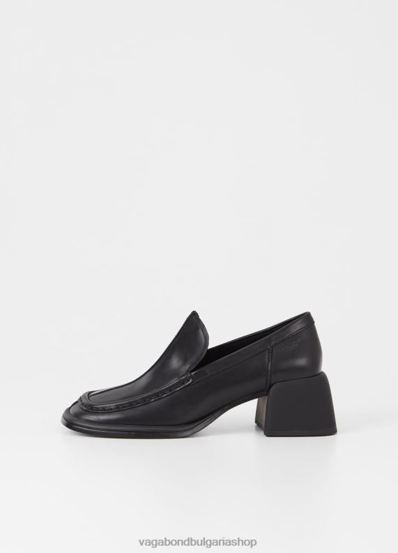 ansie са мокасини на ток със съвременен израз. стилът е изработен от черна кожа със заоблена форма на пръстите и декоративни шевове в горната част. разширените токчета са с размери 59 мм.