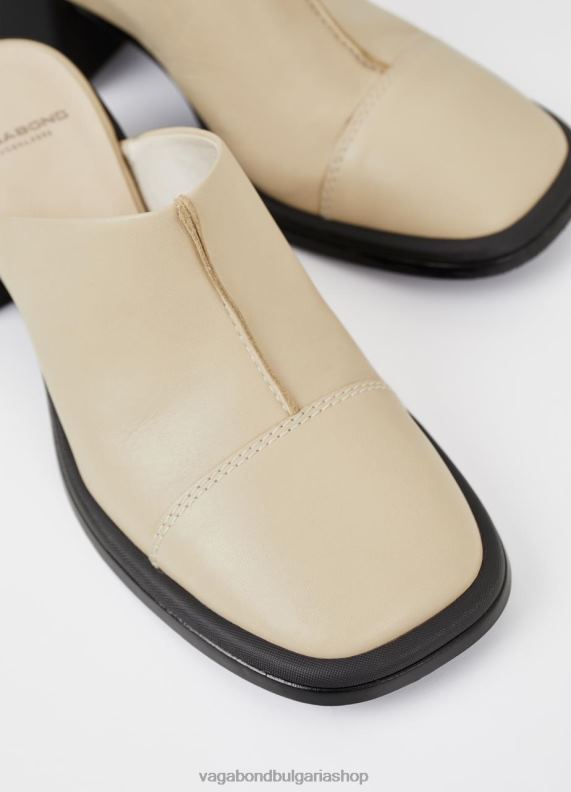 ansie са мулетата на ток със съвременна визия. стилът е изработен от мръсно бяла кожа с повдигнати шевове и дизайн с приплъзване. блоковите токчета в контрастен цвят са с размери 59 мм.