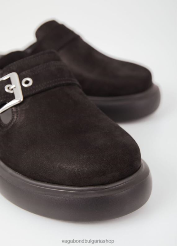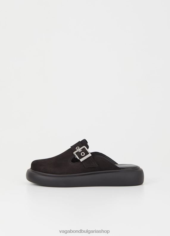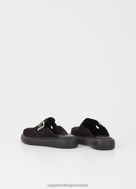 blenda са небрежните мулета с минималистичен външен вид. приплъзващият се стил е изработен от черен набук с метална катарама с регулируема каишка и капси. плътните, заоблени външни подметки са с размери 40 мм. детайлите включват подплатени стелки.