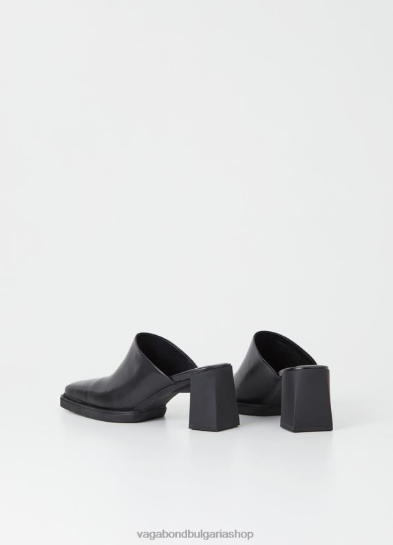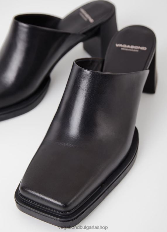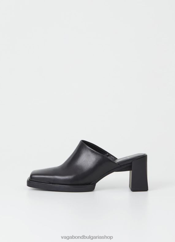 Изтъкнатите мулета edwina са изработени от гладка черна кожа, с остри квадратни пръсти и дизайн с приплъзване. скулптурният стил се основава на 74-милиметрови различни блокови токчета за фино повдигане.