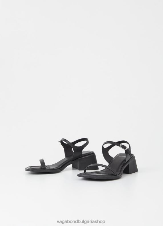 ines е модерният сандал на среден ток с намалена естетика. стилът е изработен от черна кожа с тънки кожени каишки, регулируема каишка на глезена и фини квадратни пръсти. стилът се основава на тънки външни подметки и 53 мм разширени токове.