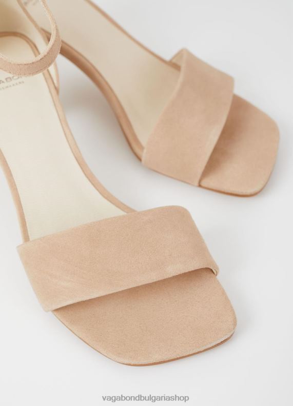 luisa са сандалите на висок ток с елегантен вид. стилът е изработен от бежов велур с широка каишка на пръстите, затворена пета и регулируема каишка на глезена с катарама в сребрист цвят. тънките високи токчета са с размери 76 мм.