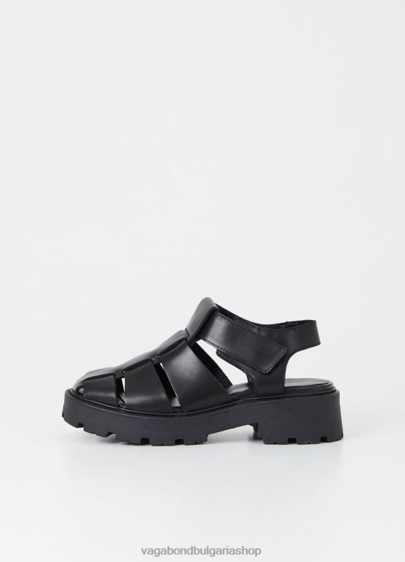 cosmo 2.0 са масивните рибарски сандали, изработени от черна кожа, със заоблени пръсти, отворени пети и закопчаване с кукичка. the solid rubber outsoles measure 45mm.