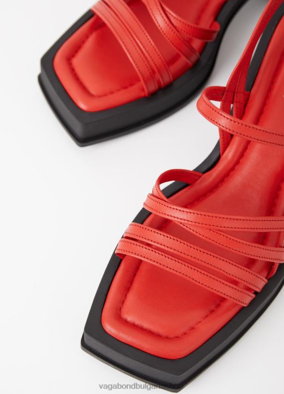 hennie е сандали с каишки, вдъхновени от 90-те, вдъхновени от нашите архиви. стилът е изработен от червена кожа, включващ тънки кожени каишки в горната част и широка форма на пръстите. здравите блокови токчета в контрастен цвят са с размери 67 mm.