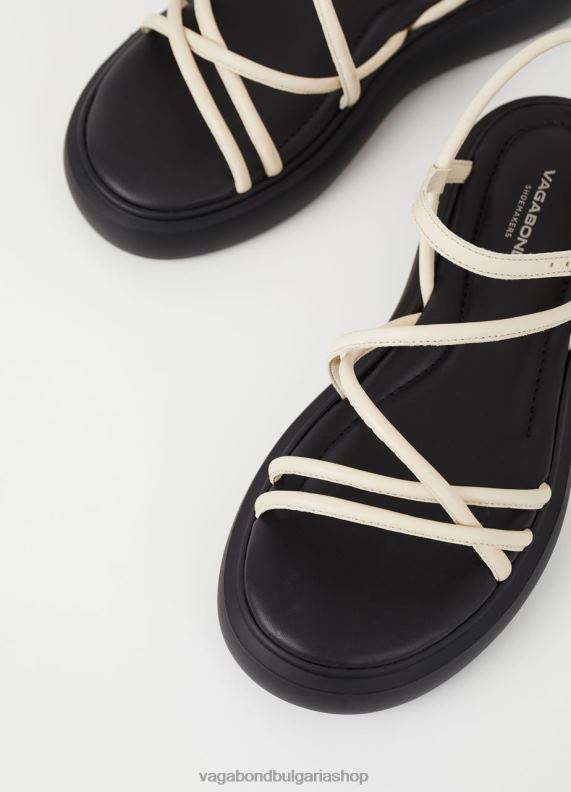 blenda са ежедневните сандали с каишки с актуализиран силует. стилът е изработен от почти бяла кожа с деликатни кожени каишки в горната част и регулируема презрамка с катарама. заоблените външни подметки в контрастен цвят са с дължина 40 мм.